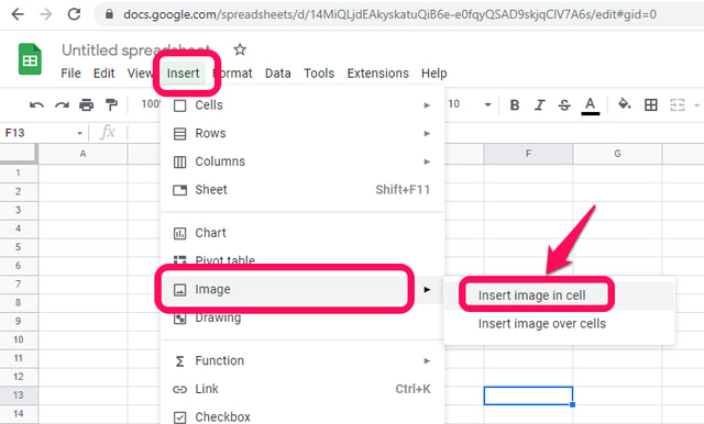 In Google Sheets, you can add pictures in two ways. One way is to let the picture float above the cells, and the other way is to put it directly inside a cell.