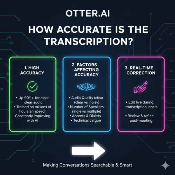 Accuracy means how well it gets the words right. Otter is pretty good, but not perfect.